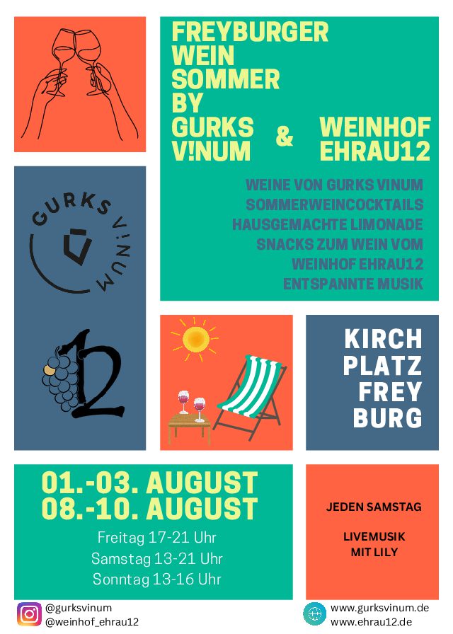 Vom 01.08-03.08.2025 und 08.08.-10.08.2025 sind wir im Rahmen des Freyburger Weinsommers mit unseren Weinen, sommerlichen Weincocktails und Limonade und leckeren begleitenden Speisen zum Wein vom ... mehr lesen